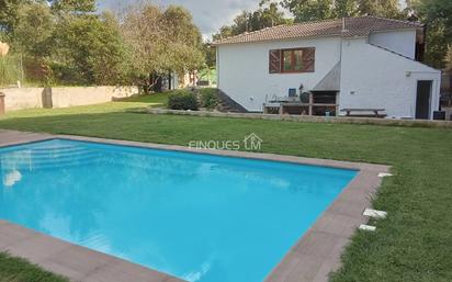 Bonita casa en venta en urbanización de Santa Coloma de Farners, la vivienda tiene unos 227m2 construidos en una parcela llana de 900m2. La casa se distribuye de la siguiente manera; terraza de entrada, recibidor con armario empotrado, 2 habitaciones (una doble y otra sencilla amplia) 1 baño con ducha, salón comedor con bonito fuego a tierra, cocina. Toda la planta principal tiene un precioso parquet de alta calidad. En planta inferior que se accede a través de escaleras interiores dispone de un gran y amplio comedor, una habitación doble, otra sencilla y un baño completo, en la misma planta también dispone de una cuarto para la lavadora y de máquinas. En esta habitación se encuentra la caldera de gas ciudad, las 4 baterías de las placas solares. Tiene unas preciosa bodega. La vivienda dispone de cerramientos de pvc con doble cristal y oscilobatientes, en la planta de inferior el suelo es porcelánico de alta calidad. En la parte exterior de la vivienda dispone de una preciosa y amplia zona de barbacoa que conecta fácilmente con la cocina de la vivienda y con la zona de piscina. La piscina es grande y de agua salida y dispone de una pérgola. El jardín está acabado, la entrada pavimentada, la parte trasera zona verde para la piscina y con árboles frutales. Excelente ubicación al lado de zona verde y a unos 3 minutos del pueblo de Santa Coloma de Farners dónde se encuentran todos los servicios. La urbanización tiene bus urbano, escolar y una tienda de víveres. Destacar de la casa que está para entrar a vivir y en una excelente zona. Solicite información sin compromiso.