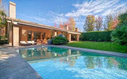Chalet de Lujo en Prado del Rey, Pozuelo de Alarcón Descubra este exclusivo chalet ubicado en una de las zonas más prestigiosas de Pozuelo de Alarcón, dentro de una urbanización privada con vigilancia 24 horas y acceso restringido, ideal para quienes buscan seguridad, privacidad y un estilo de vida excepcional. Distribución y Características Principales: - Planta principal: - Elegante salón principal con techos altos que maximiza la luminosidad y la sensación de amplitud. - Amplio comedor independiente, perfecto para reuniones familiares o sociales. - Gran cocina totalmente equipada, diseñada para satisfacer a los más exigentes. - Segundo salón acogedor para disfrutar de momentos más íntimos. - Planta superior: - Majestuosa habitación principal con baño en suite y vestidor, un verdadero refugio privado. - Tres habitaciones adicionales, cada una con baño en suite, asegurando comodidad y privacidad - Espacio tipo buhardilla, ideal para usar como despacho, dormitorio adicional o sala polivalente según sus necesidades. - Planta sótano: - Garaje con capacidad para 4 coches. - Salón de juegos amplio para el entretenimiento de toda la familia. - Cuarto de almacenamiento, cuarto de lavandería y plancha, que ofrecen funcionalidad extra. - Dormitorio de servicio con baño privado para mayor comodidad del personal. Exteriores y Urbanización: La urbanización cuenta con amplias zonas verdes, servicios comunitarios exclusivos y vigilancia permanente, asegurando tranquilidad y un entorno seguro para toda la familia. Climatización por suelo radiante, y aire acondicionado por conductos frio/calor. Piscina exterior, con cobertor automático, y amplio jardín con césped natural. Este chalet representa el equilibrio perfecto entre lujo, comodidad y ubicación privilegiada. ¡Una oportunidad única para disfrutar de un hogar diseñado con cada detalle pensado para su bienestar! Contáctanos para ampliar información.