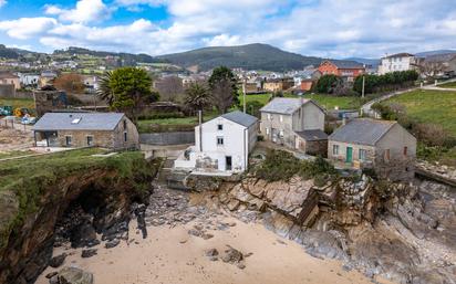 Esta casa se encuentra en el corazón de la Mariña Lucense, a solo 7 km de Foz y de Burela. Goza de una ubicación privilegiada, al pie de una pequeña playa y con acceso directo a la arena. La vivienda se distribuye en dos plantas y una bajocubierta, con una superficie aproximada de 50-60 m² por nivel. El interior de la planta baja incluye un luminoso hall, una cocina totalmente equipada, un aseo y un acogedor salón con chimenea y techo de madera, con una puerta acristalada que proporciona acceso directo a la playa. La primera planta alberga tres dormitorios y un gran cuarto de baño totalmente reformado, con una espaciosa zona común que las conecta. Avanzando por las escaleras se alcanza la bajocubierta, un espacio diáfano de gran tamaño con un techo de madera completamente nuevo, ideal para convertir en un área de ocio, un despacho o incluso en dormitorios adicionales. Junto a la entrada principal, una amplia terraza exterior se convierte en el lugar perfecto para reuniones y comidas, con una escalera de piedra que conduce directamente a la playa. La casa se encuentra a escasos minutos de playas como Arealonga (3 min) A Rapadoira (13 min), o la emblemática playa de las Catedrales (22 min). A pocos metros de la propiedad, una pista de unos 8 km para bicicletas y caminantes conecta directamente con Foz.