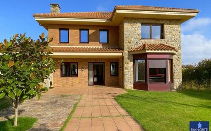Exclusivo chalet en Luanco – Peroño.Descubre esta magnífica propiedad situada en una de las zonas más tranquilas y elevadas de Luanco, a escasos pasos de la playa y del centro urbano. Un entorno privilegiado donde disfrutar de la calma, el aire puro y unas vistas inigualables. No solo verás el mar y toda la costa hasta Gijón, también en los días claros se divisa incluso Picos de Europa.Cuatro enormes dormitorios todos con empotrados, cocina completamente amueblada en altos y bajos y a ambos lados, zona de comedor independiente, un gran salón con chimenea y salida directa al jardín privado de 900 m2,rodeado de vegetación, que ofrece el espacio perfecto para relajarse, compartir momentos en familia o disfrutar del clima cantábrico.Calidades excepcionales y en un estado de conservación impecable.Construido con materiales de primera calidad: ventanas oscilobatientes Climalit con rotura de puente térmico, suelos de parquet en las habitaciones y gres en salón, cocina y baños. Calefacción por gasoil para máximo confort, sistema de alarma, persianas eléctricas... Distribución en tres plantas:Planta baja: amplia cocina, comedor, espectacular salón con chimenea y gran cristalera con acceso directo al jardín, dormitorio y baño completo.Primera planta: tres dormitorios y dos baños, uno de ellos en suite con bañera de hidromasaje.Bajo cubierta: espacio diáfano con gran altura y vistas impresionantes a la Costa Cantábrica y, en días despejados, hasta los Picos de Europa.Garaje cerrado con capacidad para al menos dos vehículos y cuarto de lavado independiente. ! Visítelo con Rianorte Luanco sin ningún compromiso ¡. ! Nos encanta enseñarlo ¡.