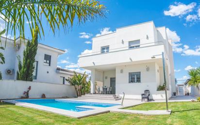 Vivienda singular en zona norte de Jerez. Le ofrecemos este chalet independiente que se asienta sobre un parcela de 519 m2. La vivienda se divide en 2 plantas . En planta baja encontramos un amplio salón independiente con chimenea. Cocina completamente equipada que de acceso al porche. Un amplio recibidor y un baño completo. En planta 1ª encontramos, 3 amplios dormitorios, con armarios empotrados , uno de ellos con acceso a una terraza, la cual está preparada para una posible ampliación del misma. El dormitorio principal tiene vestidor y baño suite, con ducha y bañera hidromasaje. La vivienda dispone, además, de a/a centralizado, independiente por planta. El sótano tiene una superficie de 106 m2, y en el encontramos 2 plazas de garaje, una habitación, el cuarto de la depuradora y el trastero. En su parte exterior, encontramos un pasillo que da acceso a un amplio jardín y la piscina de agua salada. La vivienda cuenta además con placas solares. No pierda la oportunidad de vivir en esta casa de ensueño. Llámenos y pida información sin compromiso .