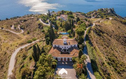 Cumbre Villas presenta esta excepcional villa de estilo morisco en venta en Salobreña, situada en una parcela elevada de aproximadamente 9.000 m², que ofrece una privacidad extraordinaria y vistas panorámicas ininterrumpidas al mar Mediterráneo, la costa y el histórico castillo de Salobreña. Construida en 1969 con un nivel de calidad muy alto, la propiedad combina de forma magistral la arquitectura andaluza y morisca con amplios espacios de vida interiores y exteriores. La propiedad se distribuye de forma simétrica alrededor de un patio central con fuente y cuenta con un total de 10 dormitorios, 9 baños y un aseo de invitados, con una superficie construida total de 674 m², repartidos entre la casa principal, un alojamiento independiente para invitados y una casa de piscina. La casa principal dispone de elegantes estancias, múltiples terrazas y patios, mientras que el alojamiento de invitados y la casa de piscina ofrecen espacios adicionales muy versátiles. Los jardines paisajísticos evocan la Alhambra, con fuentes moriscas, estanques, senderos de mosaico, césped y árboles maduros. En el corazón del jardín se encuentra una gran piscina (14,50 m x 5,50 m) rodeada de terrazas y una casa de piscina con porche cubierto, bar, barbacoa y chimenea, así como dos habitaciones con baño en suite. La propiedad dispone además de un camino de acceso privado, un garaje doble (45 m²) y un carport para varios vehículos. Situada en la ladera de Costa Aguilera, esta villa ofrece tranquilidad y privacidad, estando a menos de 10 minutos en coche del centro de Salobreña y de sus playas. Existe asimismo la posibilidad de dividir la parcela y construir una segunda villa en la parte baja del terreno. Contacte con Cumbre Villas para más información o para concertar una visita.