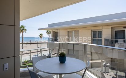 Engel&Volkers se complace en presentar en exclusiva, una oportunidad única, que no se puede dejar pasar en la vida. Un apartamento totalmente modernizado y en primera línea de mar, en la playa de la Patacona en la ciudad de Valencia, directamente sobre el paseo marítimo de dicha playa, a escasos 10 metros de la arena, en un entorno privilegiado y de alto standing. El apartamento se encuentra en la planta más alta del edificio, cuenta con un balcón, con espacio para mesa y sillas, para gozar al máximo de las mejores vistas al paseo marítimo y a la playa de la Patacona. Con techo altos de 2,93 que le dan una gran amplitud a las estancias, está distribuido con un amplio comedor, unido por un lado a una perfecta completa cocina americana, por su ubicación este -sureste, recibe sol durante toda la mañana hasta la tarde. Cuenta con una habitación o dormitorio doble con amplios armarios empotrados, que comunica con el baño de la casa, un amplio baño completo. (El apartamento se vende sin muebles). Todas las ventanas son de climalit, que aíslan del frío del calor y del ruido, el aire acondicionado, va por conductos y todas las persianas son eléctricas y existe la opción de instalar placas solares correspondientes a este apartamento en el techo del edificio. La propiedad en venta incluye una plaza de garaje de 11 m2 y un trastero de 8 m2. Muy importante, a destacar, que esta propiedad como las restantes de este edificio y de casi todos los edificios de primera línea de playa, cuentan con licencia de apartamento turístico desde la escritura de propiedad original. Actualmente la propiedad está presente en varias plataformas de alquiler vacacional, generando importantes ingresos en alquiler vacacional. No te lo puedes perder, contáctanos y solicita tu visita. Sin lugar a dudas, el lugar más único para vivir en la ciudad Valencia, junto a la playa de la Patacona, lo que es un privilegio único para disfrutar del siempre agradable clima mediterráneo o una magnífica oportunidad de invertir para obtener un gran rendimiento a través del alquiler turístico. Dado que la Patacona y Valencia son las mejores ubicaciones de la costa del Mediterráneo español, la California o la Florida Europea, a escasos metros del mar, continuación del largo paseo marítimo de la ciudad de Valencia, con espacios de ocio, equipamientos deportivos, restaurantes de cocina tradicional valenciana, avenidas de palmeras junto a sus playas. Un espacio, que combina el lujo con la comodidad y la tranquilidad, cuenta con todos los servicios de cercanía y ventajas de una gran capital como Valencia, gimnasios, colegios, comercios, centros médicos, ocio, supermercados, conexión por transporte público con toda la ciudad, líneas de bus, metro-tranvia, que le puede conectar con el aeropuerto y la estación de cercanías del Cabanyal, a apenas a quince minutos a pie, que conecta con las estaciones centrales de la ciudad , estando a apenas a unas paradas en autobús de la universidad de Valencia y de la universidad Politécnica. Un lugar único y exclusivo, tanto como ubicación vacacional, como para disfrutar de él todo el año.