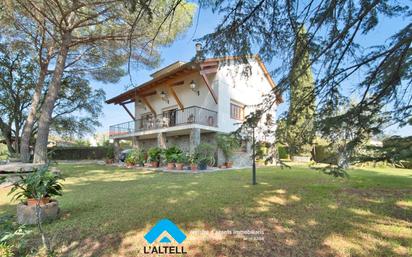L’ALTELL - Magnífica casa de estilo rústico con gran jardín privado, ubicada en un tranquilo entorno natural en La Vall, Santa Eulàlia de Ronçana, muy cerca de todos los servicios del pueblo y a escasos minutos de Caldes de Montbui. Situada entre dos calles sin salida, garantiza un ambiente seguro y sin tráfico. La propiedad cuenta con una amplia parcela de 2.486 m² y 351 m² construidos, más 390 m² adicionales de área deportiva, se distribuye de la siguiente manera: La planta baja ofrece un espacioso garaje para 2 vehículos, 1 habitación actualmente destinada a taller y acceso a una bonita bodega situada en el semi sótano. En la planta principal se encuentra un acogedor salón comedor con chimenea y acceso directo a la terraza, cocina tipo office con lavadero, 1 habitación doble con terraza y 1 baño completo con bañera. La primera planta cuenta con 4 habitaciones (3 de ellas dobles con armarios empotrados y 1 suite con vestidor y baño propio), además de 2 baños completos. El exterior ofrece un gran jardín con mucha privacidad, con zona de barbacoa, porche, 1 baño exterior renovado, huerto, pista de frontón y pozo de agua potable. Dispone de una entrada independiente y un muro divisorio construido. Entre sus características adicionales destacan la calefacción de gas natural, depósito de agua de 60.000 L, bodega, barbacoa, armarios empotrados, trastero, carpintería de madera de alta calidad, chimenea y un entorno con gran privacidad. * El precio anunciado no incluye impuestos ni gastos de notaría y registro. ** Los muebles y objetos personales no están incluidos en el precio anunciado.