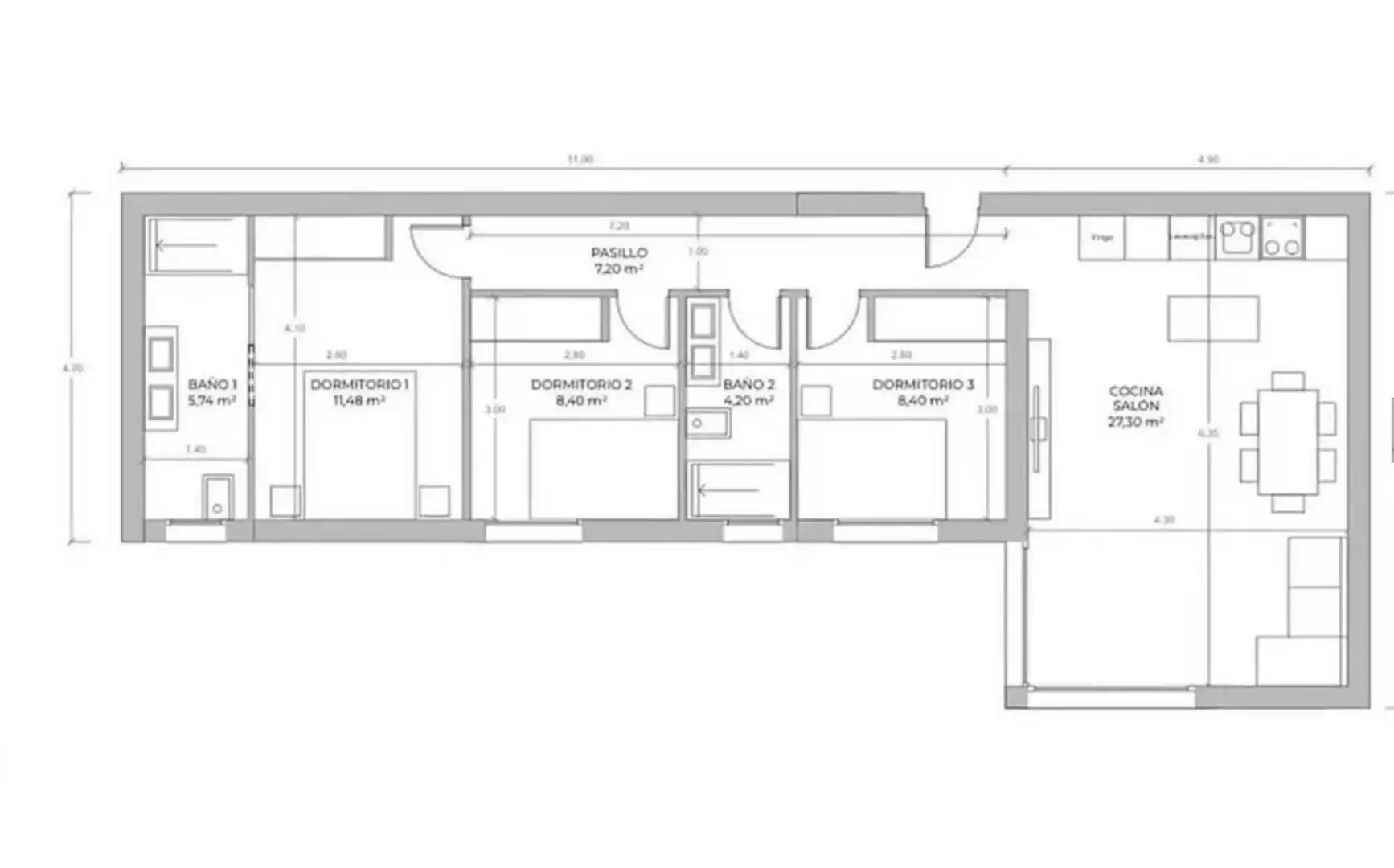 • Distribución flexible: De base, cuentas con 3 habitaciones (una suite principal y dos individuales) y un concepto abierto de cocina y salón para maximizar la luz, pero puedes cambiar la distribución como prefieras.