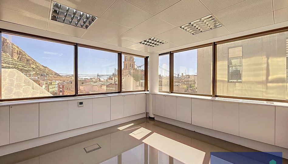 Ubicada en pleno centro de Alicante, esta oficina destaca por su amplitud, luminosidad y vistas privilegiadas, ideal para empresas que buscan una sede con imagen y confort. La oficina se entrega sin mobiliario, lista para personalizar. Uno de sus grandes valores añadidos son las vistas abiertas: por un lado a la Rambla, y por el otro al casco antiguo y al Castillo de Santa Bárbara, aportando luz natural durante todo el día gracias a su orientación este, sur y oeste. Cuenta con 249 m² construidos, actualmente organizada mediante mamparas que permiten una distribución eficiente y profesional formada por 9 despachos independientes, sala de reuniones, zona de office/almacén, 2 aseos, amplia zona de recepción. También dispone de altas prestaciones técnicas: Suelo técnico, Falso techo, Aire acondicionado frío/calor independiente en cada despacho, Cerraduras individuales y Sistema de protección contra incendios. Además, existe la opción de alquilar plazas de garaje en el mismo edificio, con acceso mediante montacoches (hasta 2.000kg).
