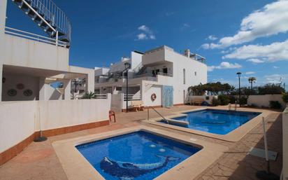 Apartamento ático situado en 1ª planta en urbanización con piscina en Palomares. Apartamento compuesto por: 2 Dormitorios 2 baños Salón comedor amplio con cocina integrada Cocina amueblada Aire acondicionado centralizado Terraza amplia Solárium privado de 60 m2 Piscina comunitaria Parking subterráneo A 2 km de la playa A 600 metros del centro del pueblo