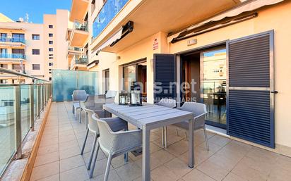 A tocar de la Rambla Sant Jordi, en una ubicació privilegiada i molt sol·licitada, hi trobem aquesta primera planta amb terrassa, pàrquing i traster que combina uns amplis espais interiors i exteriors amb accés a una zona comunitària ideada per gaudir-la. L’habitatge disposa de 101 m² construïts, es troba en perfecte estat i té una excel·lent i pràctica distribució que facilita tant el dia a dia com el descans. Des del rebedor, accedim a la cuina independent de 11 m², amb espai per a taula i amb una funcionalitat perfecta per cuinar i menjar tenint-ho tot en ordre. Tot seguit trobem el menjador amb un espai annex que fa les funcions de sala polivalent i que corresponia al que era la tercera habitació i que és de molt senzilla recuperació. Aquest menjador, és un espai còmode, lluminós i amb sortida a la gran protagonista: una terrassa de 26 m², un autèntica joia durant tot l’any i especialment quan arriba el bon temps. A la zona de nit hi trobem les altres dues habitacions, una d’elles suite amb vestidor, bany complet i balcó i l’altra una habitació doble amb un armari de paret de 7 portes. De forma afegida l’habitatge compta al passadís, amb un estudi de pas o espai perfecte per destinar-lo a emmagatzematge general de la llar. Pel que fa a l’equipament, cal destacar aire condicionat centralitzat, calefacció de gas natural, terres de parquet, tancaments d’alumini amb doble vidre i 3 armaris de paret. A la zona comunitària hi trobem la piscina i també una pista de bàsquet. Si busques un pis on l’interior es igual d’important que l’exterior, aquesta és la teva oportunitat, contacta’ns i agenda la teva visita.