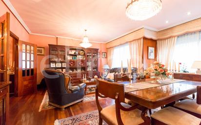 Situacion inmejorable exterior, en el ensanche de bilbao con garaje directo, balcón, buena distribución, salón 4 habitaciones 3 baños, cocina y trastero-despensa, buena construcción, buen estado clásico, suelos de elondo, puertas y ventanas madera sapelly.