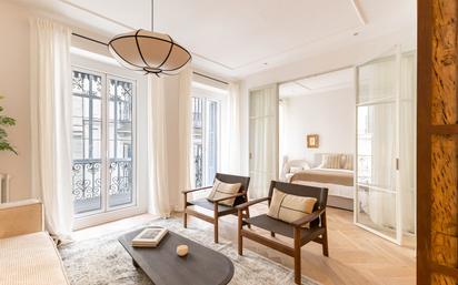 Engel & Völkers ofrece esta exclusiva y confortable vivienda actualmente en proceso de reforma con excelentes calidades y que que finalizará a comienzos de diciembre de 2025. Las fotos que se muestran actualmente son renders de terminaciones similares, dado el estado de la reforma. La vivienda está en una segunda planta, muy luminosa, con excelente distribución y tres acogedores balcones, en una finca clásica representativa de principios de siglo XX, con ascensor y fachada en perfecto estado. La distribución de esta elegante vivienda aprovecha al máximo el espacio y cuenta con dos dormitorios y dos baños completos. Al entrar nos conseguimos con una amplia estancia donde está ubicado al frente el comedor con la cocina integrada, totalmente equipada con electrodomésticos de alta gama y con una isla central, en el lado derecho un confortable salón que tiene 2 acogedores balcones que le proporcionan mucha luz a la vivienda. Inmediatamente a la derecha, frente al salón comedor, tenemos el dormitorio secundario con armario empotrado y un agradable balcón y un baño con doble entrada que permite dar servicio a este segundo dormitorio y a su vez ser utilizado como aseo de cortesía. Entrando a la izquierda, yendo hacia el interior de la vivienda, tenemos frente a la cocina, un espacio que puede utilizarse como zona de lectura o de trabajo, con un gran ventanal que resulta muy funcional, seguidamente tenemos el dormitorio principal de gran tamaño, con vestidor, baño en suite y gran ventanal de suelo a techo que inunda de luz natural a este dormitorio. La vivienda tiene además altos techos, calefacción individual a gas y aire acondicionado por conductos. Esta exclusiva vivienda está ubicada a 4 minutos andando al antiguo Convento de las Salesas Reales y su apacible y arborizada Plaza, cerca de exclusivos restaurantes, boutiques, librerías, farmacias y comercios en general, muy céntrica y muy bien comunicada, a pocos minutos del Paseo de Recoletos, El Parque El Retiro y La Gran Vía, lo cual la convierte en una propiedad muy por deseada por quienes buscan una vivienda exclusiva para residir en ella, o por inversores tanto extranjeros como residentes en España. En la zona prime del céntrico Barrio de Justicia, en una de las zonas más deseadas del centro de la capital, con un característico ambiente de lujo, chic y bohemio, a la vez que concentra simultáneamente una exquisita oferta cultural, gastronómica y de moda, fuera de lo corriente. Boutiques con una envidiable oferta en diseño y calidad a precios medio altos, galerías de arte y anticuarios distinguidos, librerías con encanto, restaurantes de renombrada reputación así como bares de nueva generación, pequeños cafés y comercios de alimentación con cuidada y selecta oferta, así como la bellísima arquitectura de sus edificios de comienzos del siglo XX, que han convertido el barrio de Justicia en uno de los más codiciados de la capital española atrayendo a un público con nivel sociocultural alto. Está magníficamente ubicado, muy cerca del antiguo Convento de las Salesas Reales, entre los nobles y prestigiosos barrios de Recoletos en Salamanca y Almagro en Chamberí que de siempre formaron el cinturón más elegante y aristocrático de la ciudad. Dotado de muy buenas comunicaciones, ofrece numerosas líneas de autobuses, así como acceso a las estaciones de metro más cercanas de Alonso Martínez, Colón y Banco de España.