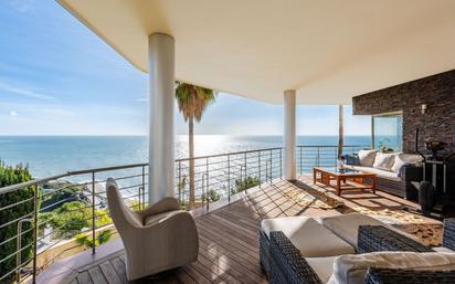 Espectacular apartamento de lujo de diseño moderno en primera línea de playa, ubicado en una exclusiva urbanización entre Torrox Costa y Nerja. Situado en un enclave privilegiado, la vivienda ofrece impresionantes vistas panorámicas al mar y un entorno único donde disfrutar de la tranquilidad y el confort. Cuenta con una superficie construida de 147 m², distribuidos en 3 amplios dormitorios, 2 elegantes baños, un impresionante salón y cocina. Dispone además de varias zonas de terrazas, ideales para relajarse y disfrutar del clima mediterráneo, así como piscina privada compartida con la vivienda contigua. La parcela se encuentra completamente cerrada y ofrece una amplia zona de acceso junto a cuidados jardines tropicales. El edificio dispone de ascensor. Destacan sus excelentes calidades: suelos de parquet, climatización frío-calor, persianas automáticas, revestimientos exteriores en piedra natural, ventanas de seguridad y carpintería de madera de alta gama. Incluye además plaza de aparcamiento privada y dos trasteros. Una vivienda totalmente exterior, muy luminosa y pensada para disfrutar al máximo del entorno y el estilo de vida junto al mar. [IW]