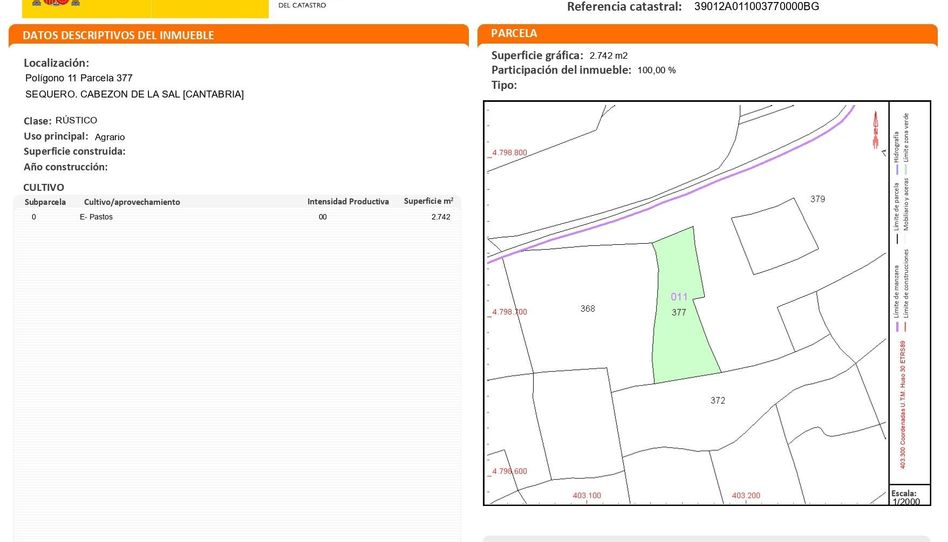 Se vende finca rústica en el monte (Casar de Periedo) con una superficie de 2.742 m2, poblada de árboles de eucalipto en fase de corte, ideal para inversión forestal o aprovechamiento maderero inmediato. Terreno natural, tranquilo y rodeado de naturaleza, perfecto para quienes buscan un espacio productivo o una parcela con potencial forestal.