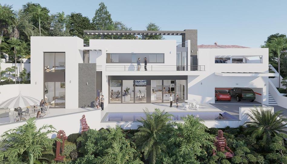 Distribuido en 2 plantas mas solárium con 4 dormitorios y 5 baños. La villa está diseñada al detalle aprovechando la orientación del entorno con doble acceso desde la planta inferior o calle superior., Con una arquitectura contemporánea y moderna que destaca y se adapta perfectamente al lugar.