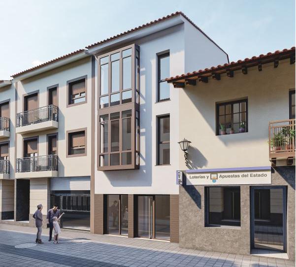 Simulación de fachada en la fotografía, edificio del centro .