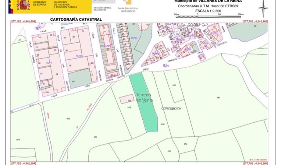 Se vende parcela de 5000 metros en el pueblo Los Villares de la Reina en la calle Depósito. En nucleo urbano y con todos los servicios cerca.