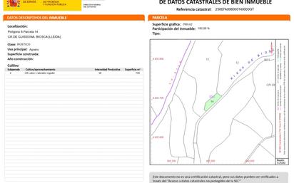 LOTE DE FINCAS RÚSTICAS EN BIOSCA, que es composa de: a. Finca rústica situada al Paratge de Prillo de Biosca de 34.542 m2. b. Finca rústica situada al Paratge de Prillo de Biosca de 46.724 m2. c. Finca rústica situada al Paratge d’ Artich de Biosca de 9.156 M2. d. Finca rústica situada al Paratge Carretera de Guissona Biosca de 799 m2 (Hort)