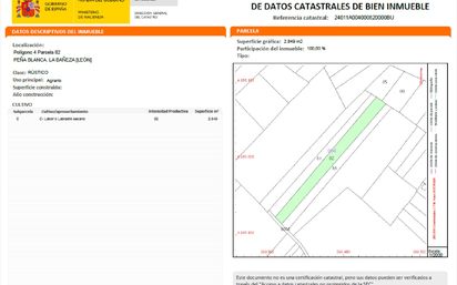 FINCA RUSTICA DE SECANO EN LA BAÑEZA, EN LA ZONA DE PEÑA BLANCA, CON UNA SUPERFICIE DE 2.346 M2. LA FINCAS ESTA REGISTRADA EN EL REGISTRO DE LA PROPIEDAD DE LA BAÑEZA. LLAMANOS Y TE INFORMAMOS SIN COMPROMISO.