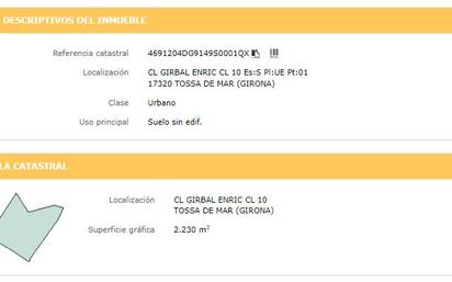 Suelo urbano de uso residencial en Calle Enric Claudi Girbal, en el municipio de Tossa de Mar, provincia de Girona. Dispone de una superficie de 203.07m2. La topografía natural del terreno es llana, con fachada a dos calles. Se trata un terreno urbano consolidado La caracterización urbana, es que se trata de una zona con desarrollo finalizado, con una consolidación de nivel medio alto. Existe pavimentación, alcantarillado, suministro de agua, suministro de luz, existe suministro de gas por red general, dispone de postes de servicio telefónico, alumbrado público, la conservación de la calidad de las infraestructuras colindantes es de nivel medio. - La parte vendedora es propietaria de una participación indivisa del Inmueble, no siendo por ello, propietaria del 100 en pleno dominio. Dicha participación indivisa podría ser objeto de adquisición por parte del resto de copropietarios. El Inmueble se transmitirá: (i) como cuerpo cierto y a tanto alzado (ii) como un todo, inseparable (iii) en el estado registral y catastral en el que se encuentre (iv) en el estado físico, calidades, jurídico, urbanístico, administrativo, de licencias, de protección, de conservación y limpieza en el que se encuentre (v) al corriente de Gastos e Impuestos que por Ley corresponda al Vendedor sobre el porcentaje de propiedad que ostenta la parte vendedora. y (vi) sin dotación de servicios y suministros. El Adquirente asumirá: (i) la situación física y estado de conservación (ii) la situación urbanística (iii) las discrepancias entre la realidad física y la realidad registral y catastral o en la cabida del Inmueble (iv) la adecuación registral y catastral del Inmueble y (v) los tramites que conlleven la obtención de la Posesión Judicial del Inmueble. El precio de venta de este Inmueble se ha determinado en base a las anteriores circunstancias, que han supuesto un menor valor del mismo, y que deberán ser expresamente aceptadas por el adquirente en la formalización de la transmisión del Inmueble. Se recomienda que el comprador obtenga asesoramiento profesional y legal antes de adoptar la decisión de compra.