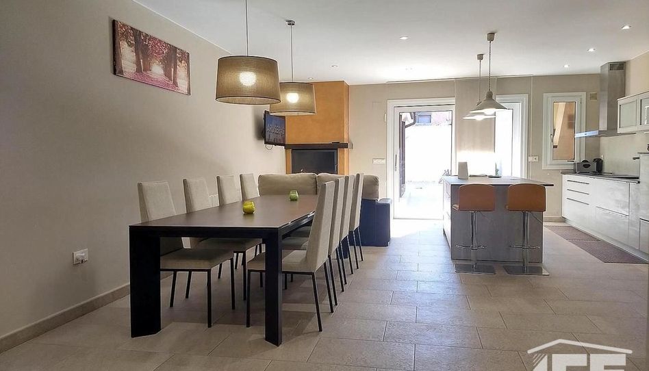 Se trata de una casa independiente distribuida en dos plantas, con un amplio garaje para varios vehículos. La planta baja se distribuye en salón de relax con sofá rinconero en \"U\" para ver la tele o jugar con la consola, amplia cocina de unos 55 m², con despensa independiente con arcón-frigorífico y zona de almacenamiento, el resto de la cocina alberga una isla con taburetes altos, mesa para 10 comensales, además los electrodomésticos son de talla XXL, tanto el frigo como el horno, incluso cuenta con placa de inducción y fogones de gas natural y rincón acogedor con su chimenea de gas. El ventanal de la cocina comunica con el porche de unos 25 m² con hogar de leña y horno empotrado y la zona exterior tiene entorno a 150 m² de superficie dividida en jardín y parte con solado antideslizante donde ubicar en verano la piscina de superficie de 2 X 6 m. En el resto de la planta baja se encuentra el dormitorio de invitados con baño en suite, el dormitorio principal con despacho, vestidor, baño y acceso directo al jardín. También cuenta con una lavandería y un espacio de usos multiplex.