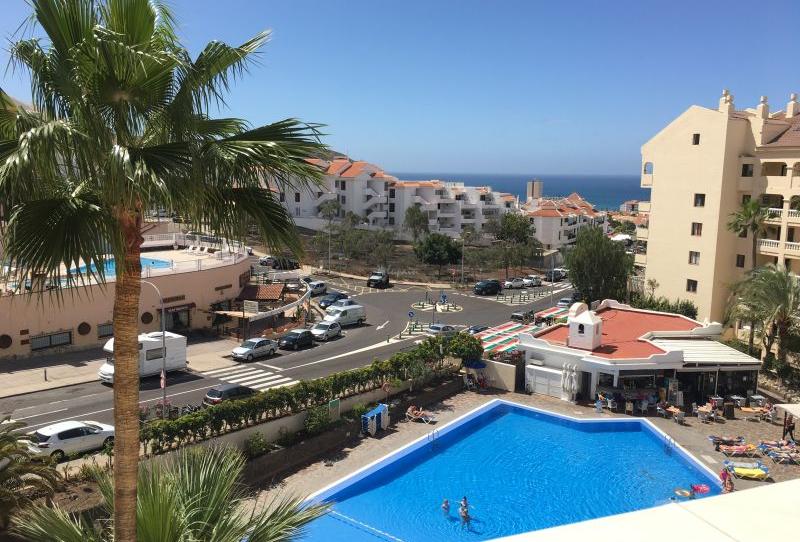 Castle Harbour in Los Cristianos. Perfectly positioned with a sunny and spacious terrace with sunshine from morning until late afternoon. Sea view and overlooking the swimming pool.