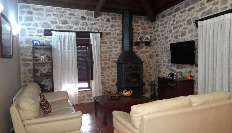 Casa seminueva totalmente amueblada, con electrodomésticos, y todos los muebles de salón, cocina y habitaciones, Dos baños uno de ellos con ducha hidromasaje, calefacción de gasoil, terraza patio, garaje, toda de piedra y madera de castaño, calidades de lujo.