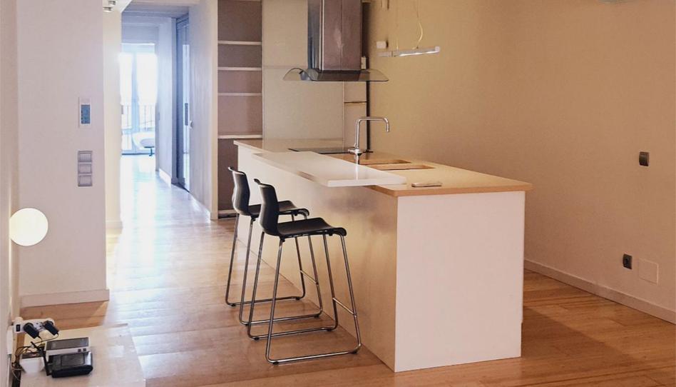Una isla con cocina central, equipada con electrodomésticos, con un gran armario despensa y con comedor y salón en un mismo ambiente, orientado a sur. Un espacio fluido que da sensación de amplitud. Con ambiente cálido, el espacio integra instalación de aire acondicionado con bomba de calor y carpintería exterior con doble acristalamiento.