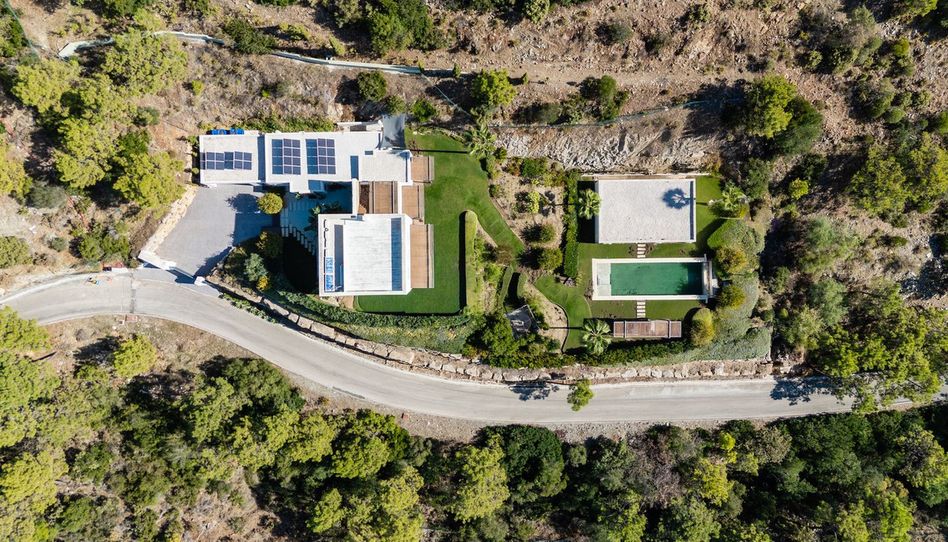 Ubicada en una parcela de 3.000 m² dentro de la urbanización privada de El Madroñal, esta elegante villa de seis dormitorios combina arquitectura moderna, privacidad y vistas abiertas al valle y las colinas.