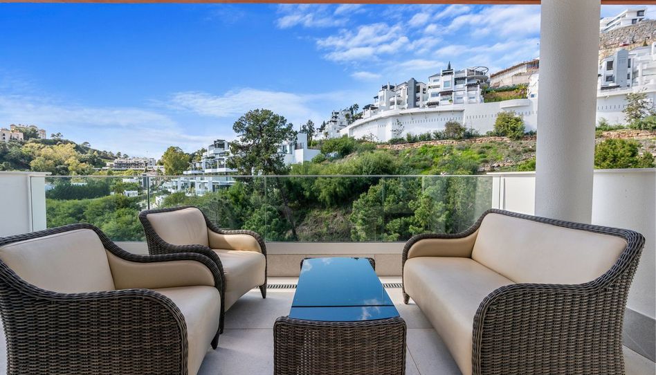 Amplio y elegantemente mantenido ático de tres dormitorios ubicado en un exclusivo complejo residencial con vistas al campo de golf de La Quinta, a pocos minutos en coche de las playas, restaurantes y servicios de Puerto Banús y San Pedro de Alcántara. Una de las principales características de la propiedad es su solárium privado en la azotea, diseñado para disfrutar al máximo del estilo de vida al aire libre. Este espectacular espacio cuenta con una cocina exterior totalmente equipada con barra húmeda integrada, frigorífico y una gran barbacoa fija, además de un jacuzzi de alta gama y una zona de comedor cubierta. El interior presenta excelentes calidades en toda la vivienda e incluye un amplio salón-comedor de concepto abierto, acompañado por una moderna cocina con isla central y barra de desayuno. La cocina está completamente equipada con electrodomésticos de calidad y dispone de un lavadero independiente. La propiedad ofrece tres dormitorios dobles, destacando el dormitorio principal con baño en suite que incluye doble lavabo y ducha efecto lluvia a ras de suelo. Un segundo baño familiar, también de estilo contemporáneo, cuenta igualmente con ducha efecto lluvia. El ático se vende con dos plazas de aparcamiento subterráneo y un trastero. Dispone de licencia para alquileres turísticos de corta temporada y el mobiliario es opcional, sujeto a negociación. Ideal para los amantes del golf, la propiedad se encuentra cerca de varios campos de prestigio como La Quinta, Los Arqueros, El Paraíso, Atalaya y Los Naranjos. Finalizado en 2021 por un promotor de reconocido prestigio, el complejo ofrece viviendas modernas y de alta calidad, con acceso a piscina comunitaria y gimnasio, en un entorno tranquilo y privado sin renunciar a la cercanía de todos los servicios.