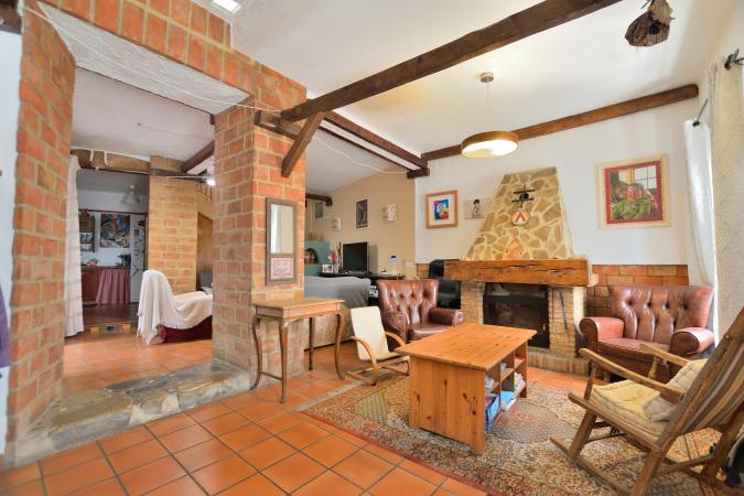 - En la planta baja, tenemos un salón de lectura, otro acogedor salón con chimenea, un comedor que comunica con un patio central que cuenta con un aljibe (27.000 litros) que se abastece de un sistema interno que recoge las aguas de la lluvia. La cocina, un dormitorio y un baño.