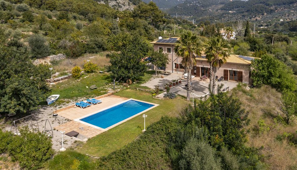 Esta fantástica propiedad en Bunyola con licencia de alquiler vacacional para 8 personas representa una excelente oportunidad de inversión, ya que también ofrece la posibilidad de ser alquilada como casa de vacaciones. La casa está situada a los pies de la sierra de Tramuntana en una parcela de casi 15,000m2 en una ubicación elevada y tranquila, en una de las zonas más solicitadas del oeste de la isla, con vistas a la bahía de Palma a lo lejos. La propiedad consta de una casa principal y una casa de invitados, ambas con confort moderno y encanto tradicional. La espectacular casa principal se distribuye en 3 niveles y una gran terraza, solarium y zona de piscina. Desde todos los niveles se puede disfrutar de magníficas vistas de Palma y la Sierra de Tramontana. La generosa superficie habitable de aprox. 310 m2 se distribuye en un impresionante salón abierto con acceso a la terraza soleada, una cocina moderna, un dormitorio en suite, así como otros 2 dormitorios dobles con baño en suite. En la planta superior se encuentra la suite principal con impresionantes vistas y acceso a terraza. Todos los dormitorios ofrecen una hermosa vista de los alrededores. La propiedad ofrece un amplio espacio de almacenamiento en el sótano, así como salas para un gimnasio o una sauna y un garaje subterráneo. La casa de invitados dispone de 2 dormitorios y 1 baño. En el aparcamiento exterior hay espacio para aprox. 8 vehículos. Esta es una propiedad en una ubicación de ensueño, donde se puede disfrutar plenamente de la mágica atmósfera mediterránea.