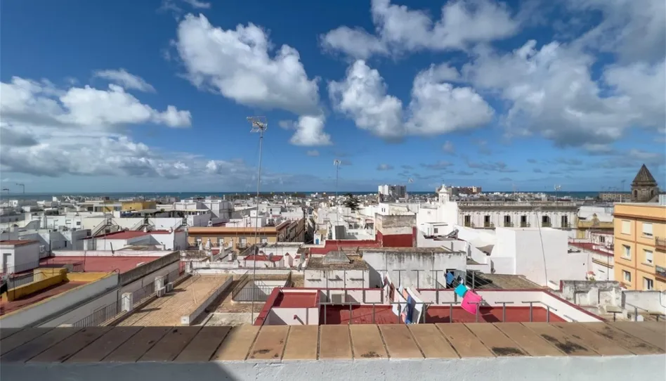 Particular vende ático con terraza de uso privado y unas vistas increíbles, al estar situado junto a la Torre Tavira, en la parte alta del centro de la ciudad y ser una cuarta planta sin ascensor. Se accede desde la puerta a la terraza, y dentro está el acceso al apartamento que consta de salón comedor con cocina americana, dormitorio amplio y cuarto de baño. Totalmente reformado hace 10 años completamente tanto la vivienda como la cubierta de la misma y el suelo de la terraza. Dispone de un trastero de obra con 3.96m2.