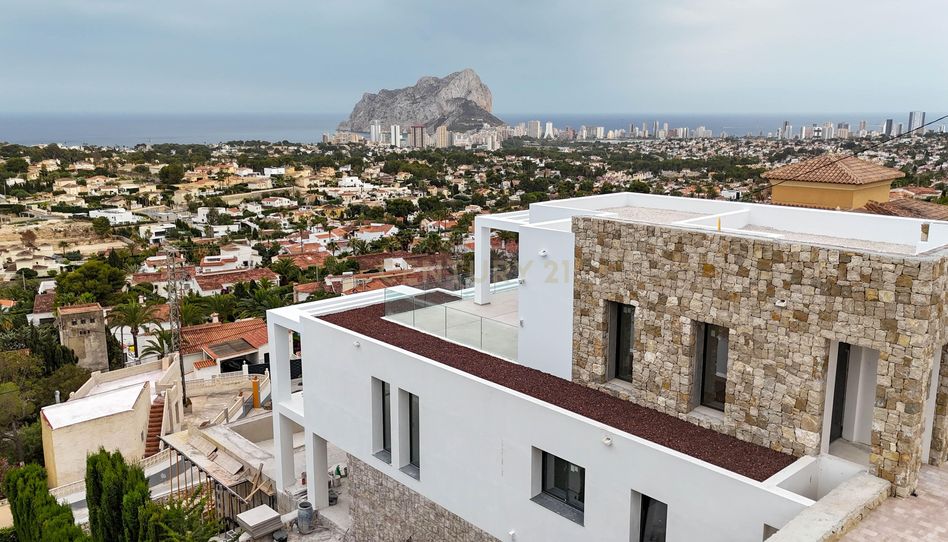 Esta propiedad se encuentra en una zona elevada de Calpe, ofreciendo espectaculares vistas panorámicas desde Calpe hasta Moraira, así como hacia el emblemático Peñón de Ifach, símbolo de la Costa Blanca. Una de sus ventajas es su proximidad a la ciudad de Calpe, que ofrece una gran variedad de restaurantes, cafeterías, tiendas y numerosas zonas de ocio, como el Real Club Náutico, así como sus amplias playas de arena con agradables paseos marítimos.