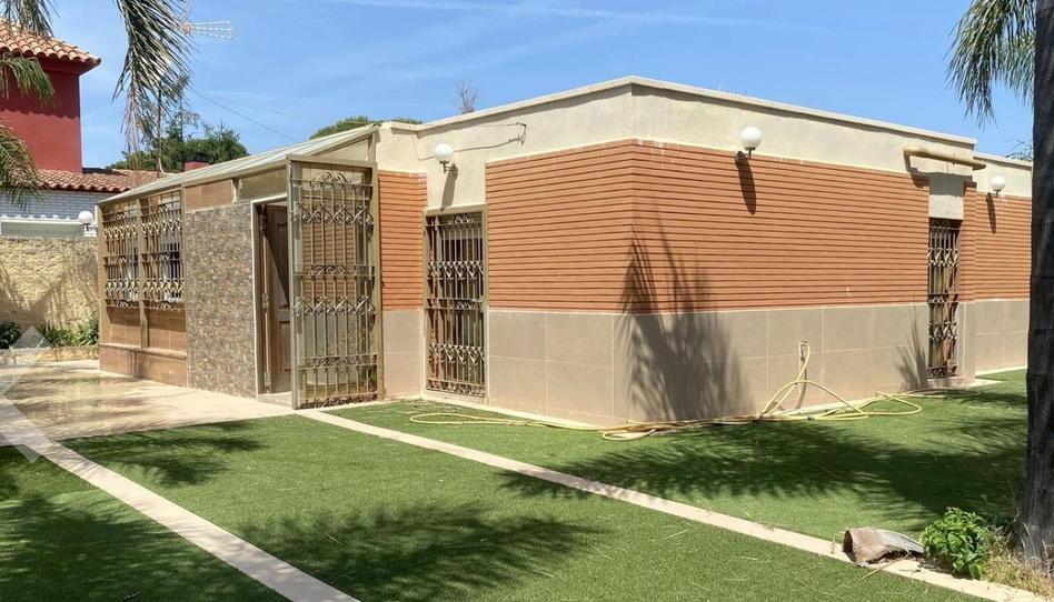 La propiedad cuenta con terrazas pavimentadas y palmeras, la zona de parking exterior es amplia para varios coches.