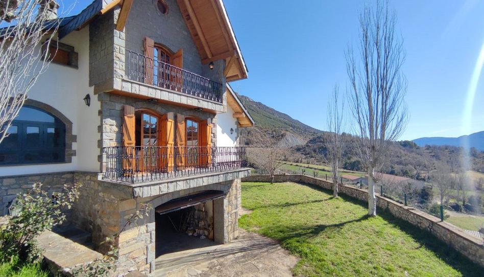 Magnífico gran chalet en finca de regadío de unos 3500 m2 con piscina, frontón y derecho a agua de acequia. Muy bien ubicado en un pueblo muy próximo a Campo y Aínsa por buena carretera, y a solamente 45 minutos de las pistas de esquí de Cerler.