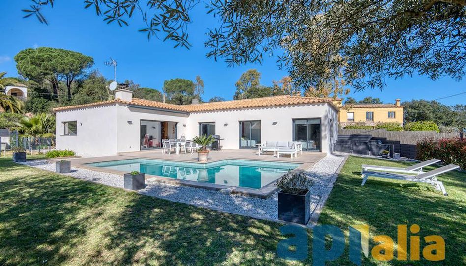 Exclusiva casa unifamiliar contemporània d'Apialia Costa Brava, a només 5 minuts de Platja d'Aro. Situada a la urbanització Mas Ros, aquesta propietat, construïda el 2018, es caracteritza per la seva lluminositat i els seus acabats d'alta qualitat. La distribució és la següent: Rebedor. Saló amb accés a una terrassa espaiosa amb vistes a la piscina i al jardí. Cuina de planta oberta. 2 dormitoris dobles, 1 bany, 1 dormitori individual (actualment utilitzat com a despatx), 1 dormitori doble amb bany en suite i vestidor, 1 garatge de 30 m² (per a 1 cotxe i 2 motos). Al soterrani: Celler. Totes les finestres són d'alumini amb doble vidre i persianes elèctriques, caldera de gasoil, llar de foc, sistema de reg automàtic, alarma, traster, etc. Una casa superbena en un terreny paisatgístic de poc manteniment, que gaudeix de sol durant tot el dia. Una propietat exclusiva i única, a només 5 minuts de Platja d'Aro i de les magnífiques platges de la Costa Brava.