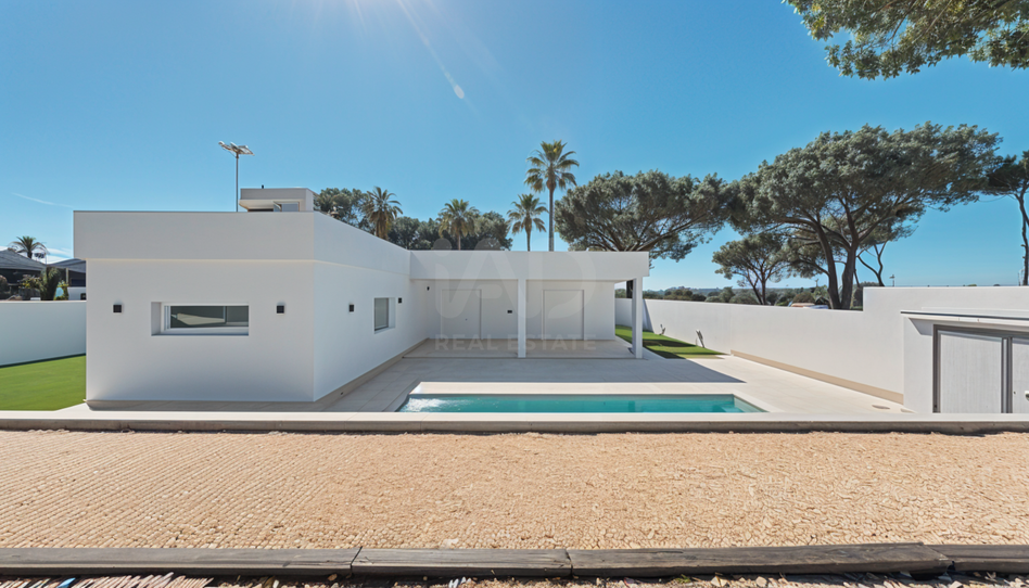 Se vende maravillosa vivienda de nueva construcción, de estilo moderno y diseño cúbico con techos invertidos, situada en una de las zonas más demandadas de Pinar de los Franceses, Chiclana de la Frontera, con acceso por carril asfaltado y un entorno tranquilo ideal para vivir todo el año o disfrutar como segunda residencia.