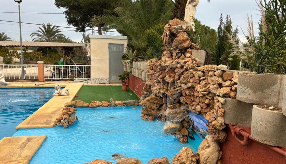 Alquiler opción Compra. Chalet entre Matola (Elche) y Crevillente (Alicante), a tan solo 8 minutos de la ciudad de Elche y 5 minutos de Crevillente. Parcela de 2.000 m2 con agua potable, agua de regadío y luz eléctrica. Gran piscina con fuentes y cascadas de agua, Parkin techado para 6 coches, buen acceso a la autovía Murcia- Alicante. Vivienda muy cuidada de 193 m2 construidos con 4 dormitorios 1 baño y 1 aseo, calefacción central y aire acondicionado, salón comedor amplio para grandes reuniones familiares , cocina equipada con todos los electrodomésticos ,así como un porche de 40 m2 que da al frente de los jardines y piscina. Existe otra construcción que es una Gran barbacoa cerrada con otra cocina independiente. La casa está preparada para personas con movilidad reducida.