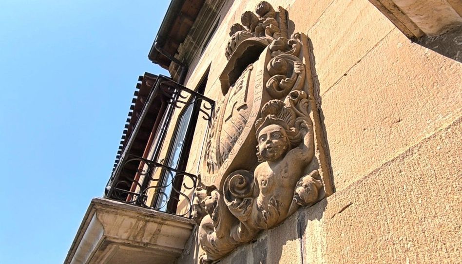 Conserva la arquitectura característica de La Rioja Alavesa, con escudo decorativo en fachada.