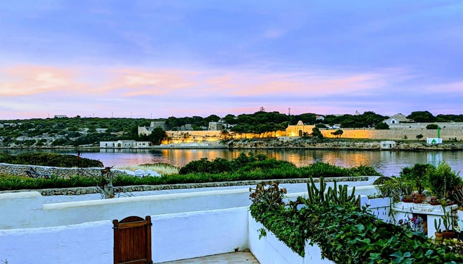El inmueble tiene enfrente el mar y dos elementos de referencia en la historia de Menorca como son el Llazaret y la Fortaleza de La Mola. Las extraordinarias vistas que proporciona la salida del primer sol de España son un regalo diario del que se puede disfrutar abiertamente desde diferentes espacios, incluido el gran dormitorio principal en el que los amaneceres son un impagable despertador natural.