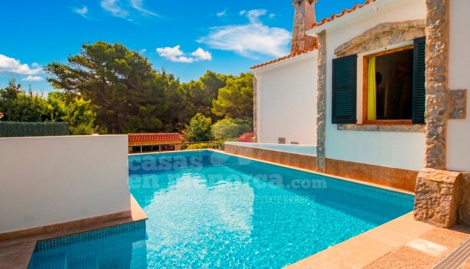 Le presentamos este encantador chalet de estilo mediterráneo con piscina privada, situado a tan solo unos pasos de la espectacular playa de Arenal d'en Castell.
