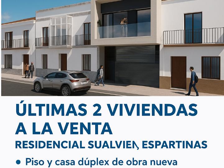 Bonita promoción de obra nueva en residencial cerrado de casas y pisos en la avenida principal de Espartinas. En Residencial Sualvien, ya puede disfrutar de todo tipo de servicios sin dejar de disfrutar de un entorno residencial con piscina y posibilidad de plaza de garaje. Constan de amplio salón con cocina equipada, baño una bonita escalera, en la segunda planta nos ofrece dos grandes y luminosas habitaciones, baño y una gran terraza o azotea para poder disfrutar del sol o para el uso necesario q se necesite.