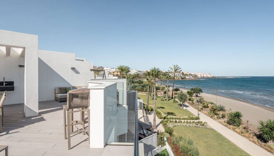 La casa en venta en Estepona Málaga está bien situada y tiene fácil acceso a la costa. El aeropuerto internacional de Málaga está a unos 80 km, Marbella a unos 35 km de la casa adosada y Puerto Banús a unos 30 km. La casa goza de una ubicación en primera línea de playa con acceso directo a la arena.