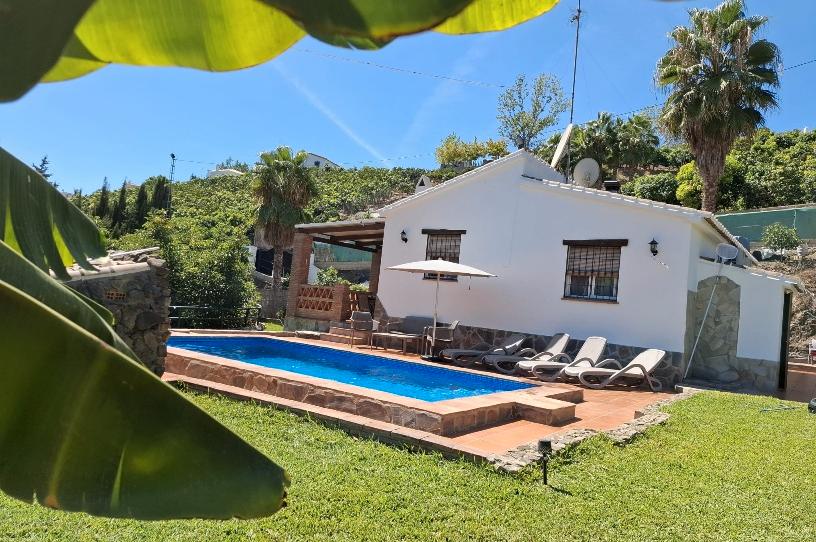 La parcela cuenta con piscina privada, zona de césped en muy buen estado, zona de barbacoa, un trastero con todo el material de jardinería (cortacésped incluido) y espacio para estacionar cuatro coches. Además cuenta con arboles frutales como aguacates, limoneros, plataneras, mangos y palmeras.