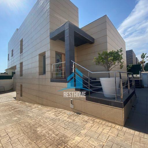 Nos encontramos con uno de los chalets que destaca por su estética vanguardista y sus líneas de diseño en una zona cómoda y tranquila. El chalet se distribuye en 3 plantas en una parcela de 500 m2 y con unos 440m2 construidos en la planta principal está articulada alrededor de un patio central en el que se encuentra una piscina climatizada (se puede cerrar la estancia pues dispone de techo eléctrico). A una parte encontramos el salón muy luminoso, amplio y con vistas a la piscina, también destacar que la estancia dispone de las últimas tecnologías en sonido. Justo enfrente a la otra parte de la piscina encontramos la cocina amplia y diáfana con acabados de diseño, justo al lado tenemos un aseo de cortesía y la zona de lavandería. Justo detrás de la cocina al salir encontramos la zona de barbacoa, con una enorme terraza al aire libre con tumbonas, mesas y sillas.. .