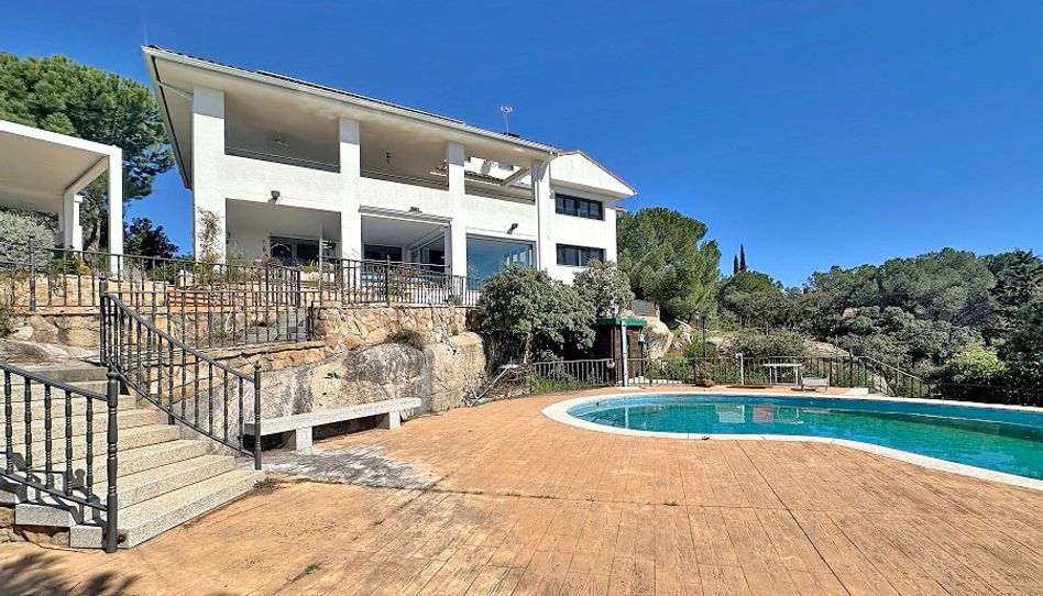 Chalet independiente en la Urbanización La Berzosa, Hoyo de Manzanares, con una superficie de 608 m² construidos en parcela de 2.480 m². Jardín consolidado con piscina, zona de barbacoa y zona ajardinada con riego automático. Vivienda muy luminosa, con amplias estancias. Dispone de 5 dormitorios, 5 baños y 1 aseo. Distribución de la planta principal: Amplio hall distribuidor que divide la planta principal en dos alas: En una de ellas accedemos a un distribuidor que nos comunica con un amplio salón con salida a una magnífica terraza, con parte cubierta, y con unas magníficas vistas. Desde el salón se accede al comedor independiente, con acceso a la terraza cubierta y a la cocina. La cocina dispone de amplia despensa y acceso a la planta baja. En la otra ala, dormitorio principal en suite con amplio vestidor. Desde el hall se comunica con otros dos dormitorios que comparte un baño, y acceso a otro dormitorio con vestidor y baño completo, con amplios ventanales y vistas (Actualmente reformado y convertido en el dormitorio principal). Desde esta estancia se accede a una terraza cubierta que dispone de jacuzzi, y a un apartamento independiente con cocina equipada y baño completo. Esta estancia tiene comunicación con la zona de cuarto de caldera, zona de lavado y vivienda principal. La buhardilla está actualmente como despacho, pero puede acondicionarse como otro dormitorio más, ya que dispone de baño completo y amplio almacén. Garaje cubierto con acceso a la vivienda. En la zona del jardín dispone de estancias como almacén para jardinería y sauna . Zona de barbacoa con pérgola bioclimática retráctil. Dispone de otra barbacoa al aire libre en la zona de la piscina.