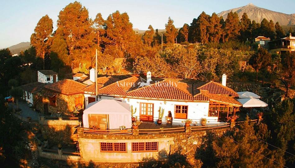 Ubicada en la zona forestal con sus magnificos pinos, en una finca de 4860 m2 con varias zonas ajardinadas y vista panorámica al océano y El Teide.