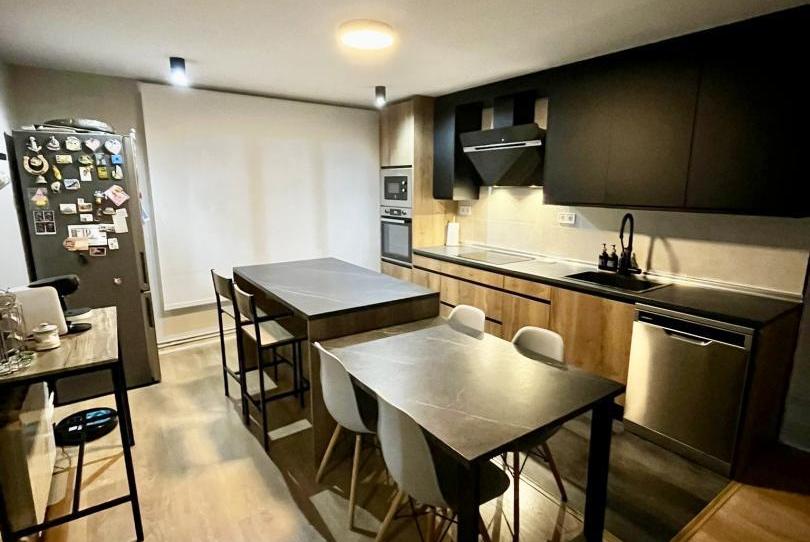 •Salón y cocina en espacio abierto, cocina moderna con isla