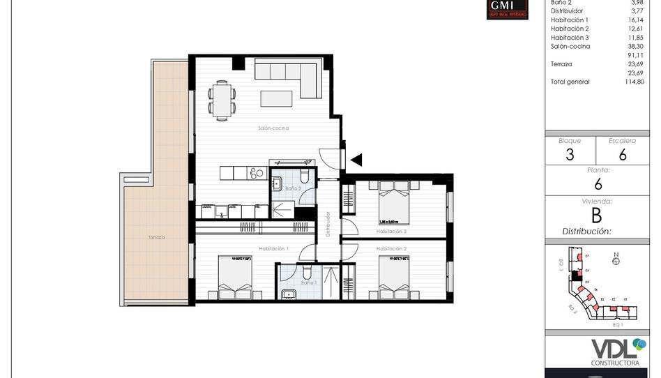 Nueva construcción de viviendas en La Lastra. Edificio Terrace Curve, situado entre la Avda. de José Aguado y Los Aluches, y centrado en la rotonda más grande de todo Leon. Viviendas de 1, 2, 3 y 4 dormitorios con amplias terrazas y cocinas amuebladas con electrodomésticos. Las viviendas también incluyen plaza de garaje, trastero, armarios empotrados, acabados de la marca Porcelanosa y la posibilidad de adaptar el proyecto de la cocina y los electrodomésticos según gustos ó necesidades. El sistema de producción de agua caliente y calefacción será por aerotermia central con contadores individuales, y el de distribución de la calefacción será por suelo radiante/refrescante. Sistema de ventilación mecánica controlada con recuperadores de calor y filtrado de aire. Se analiza con el cliente todas las posibles modificaciones sobre el proyecto a nivel de tabiquería, electricidad, fontanería, etc que quiera realizar. Comienzo principios del año 2026.
