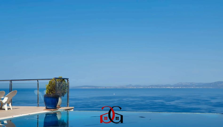 Esta luminosa villa inundada, con licencia de alquiler vacacional, en la mejor y tranquila ubicación de Bahía Grande, se encuentra en primera línea de mar y tiene una fantástica vista del mar y sobre la bahía de Palma de Mallorca.