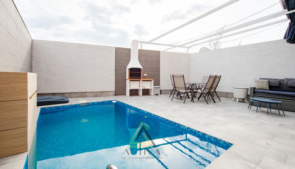 El exterior es un verdadero oasis: un jardín con piscina de agua salina y cascada, donde podrás disfrutar de días soleados. La pérgola ofrece un espacio ideal para relajarte, complementada con una ducha solar y un sistema que difunde agua para refrescarte. La propiedad también incluye videovigilancia en la parte trasera y una plaza de garaje para mayor comodidad. Con excelentes conexiones hacia Madrid y a solo 20 minutos de Toledo, tendrás acceso a todos los servicios necesarios como supermercados, colegios, farmacias y zonas deportivas. ¡No dejes pasar la oportunidad de visitar este espectacular chalet adosado!